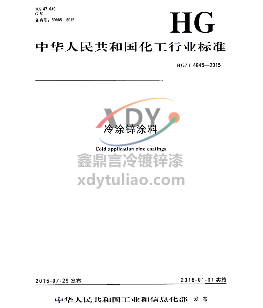 冷涂鋅涂料化工行業(yè)標(biāo)準(zhǔn)HG/T 4845-2015