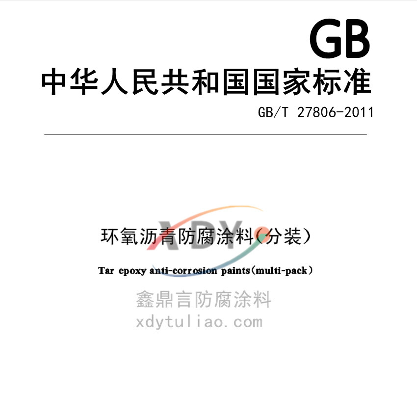 環氧瀝青防腐涂料(分裝)國家標準GB/T27806-2011,中華人民共和國國家標準 本標準規定了環氧瀝青防腐涂料產品的分類、要求、試驗方法、檢測規則、標志、包裝和貯存等內容。環氧瀝青防腐涂料適用于以環氧樹脂和煤焦瀝青為主要成膜物質,加入固化劑、溶劑、顏料等組成的雙組分涂料,包括普通型底漆、面漆和厚漿型底漆、面漆。主要用于水下及地下等鋼結構和混凝土表面的重防腐涂裝。