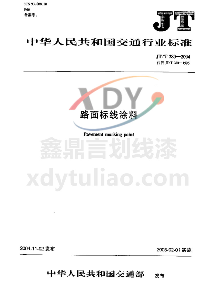 JT/T 280-2004路面標線涂料標準